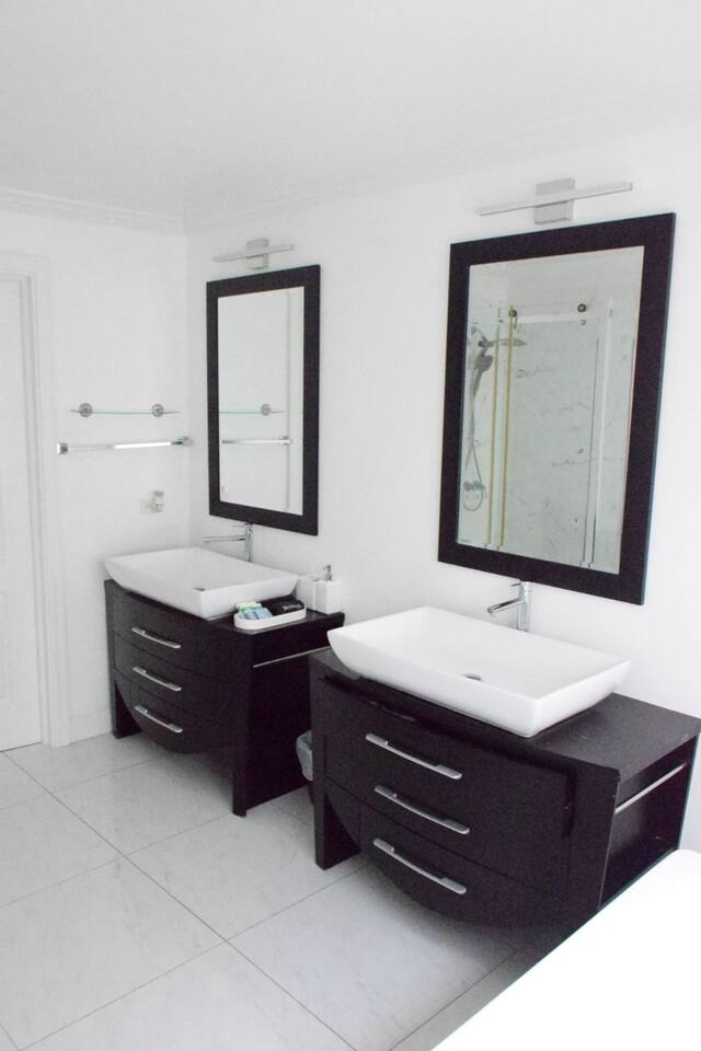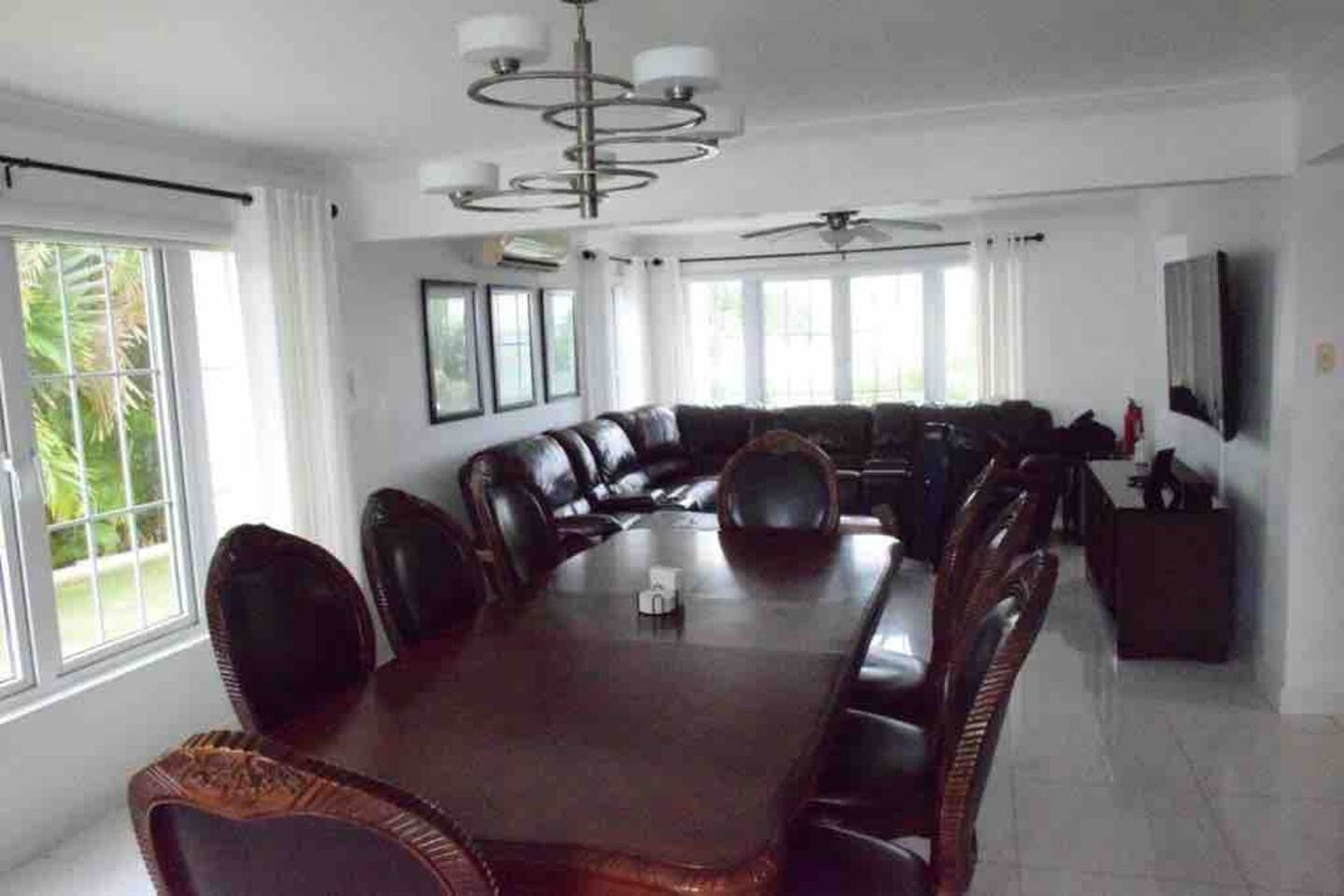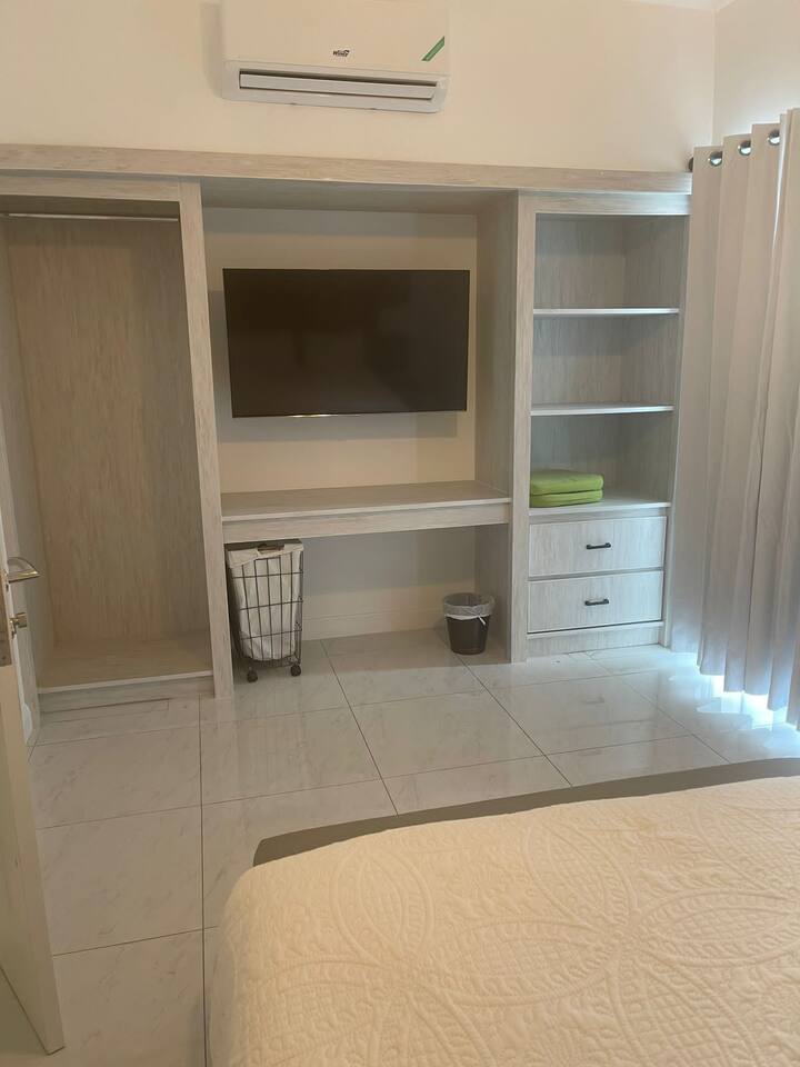 Master bedroom with walking closet,shower and hot tub.Second bedroom queen size bed with closet and third bedroom with queen bed and bathroom for both bedrooms,large kitchen with all cooking accessories,living room for a big family with games for kids.