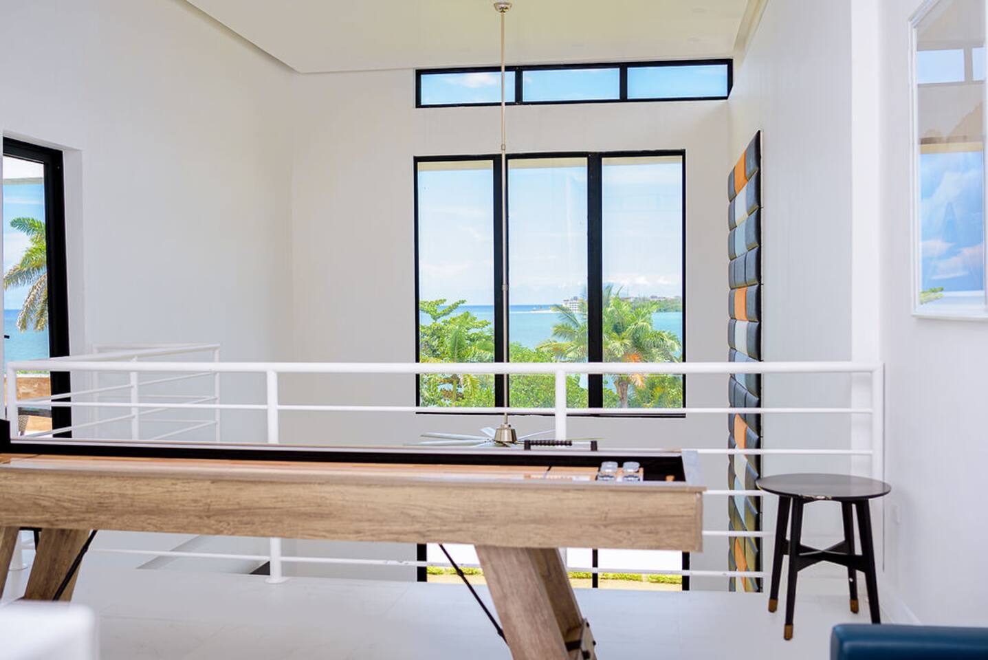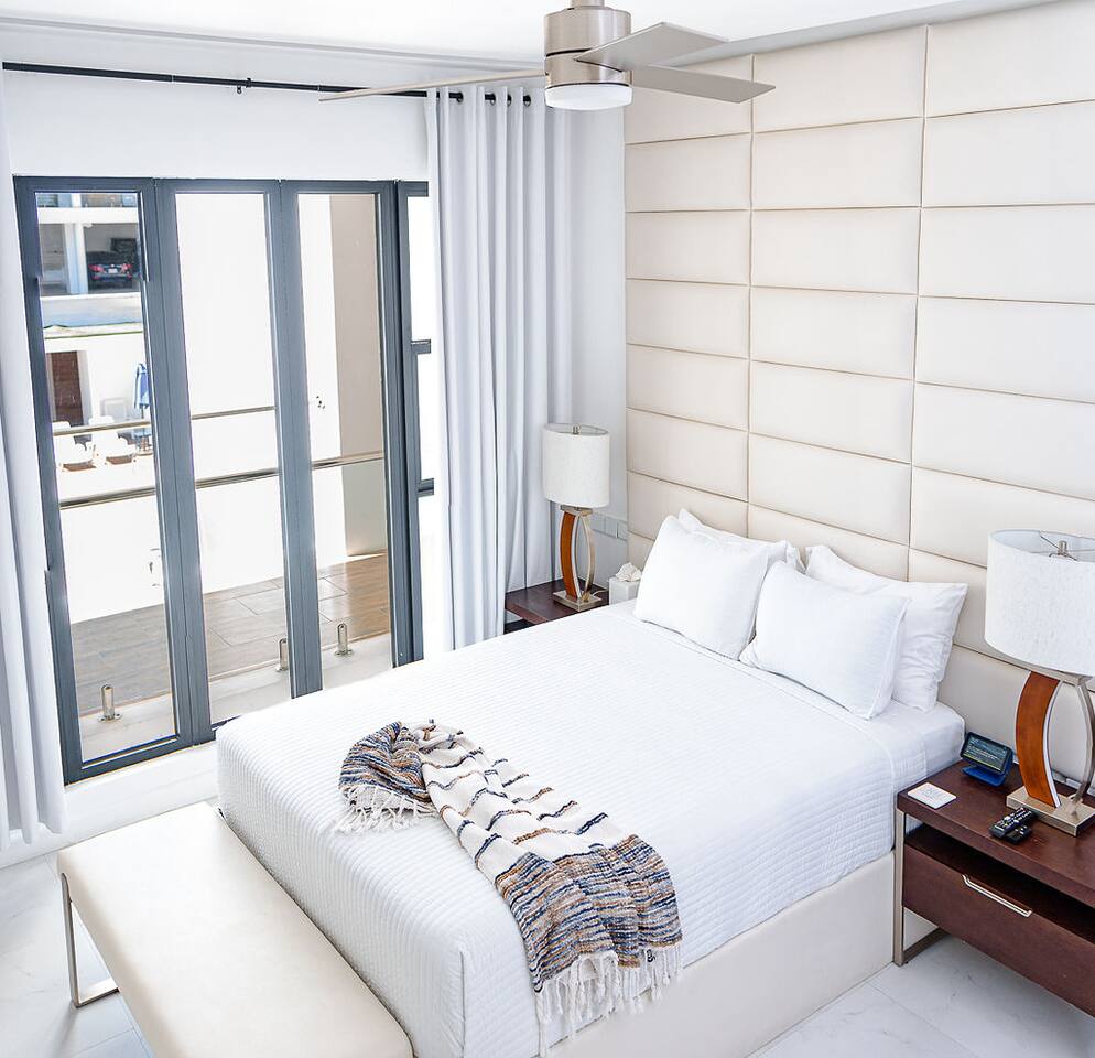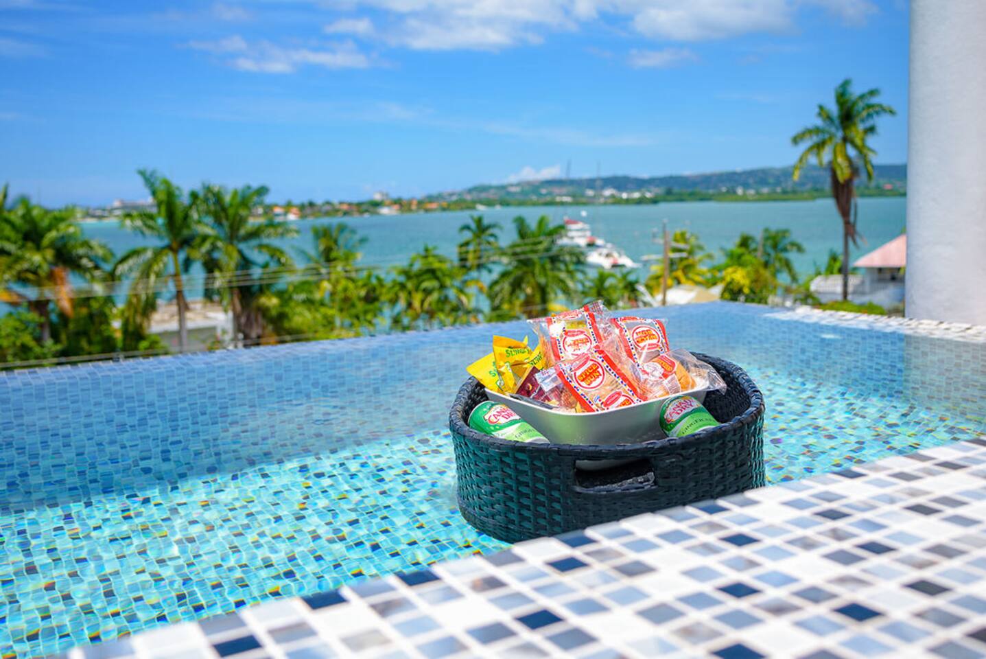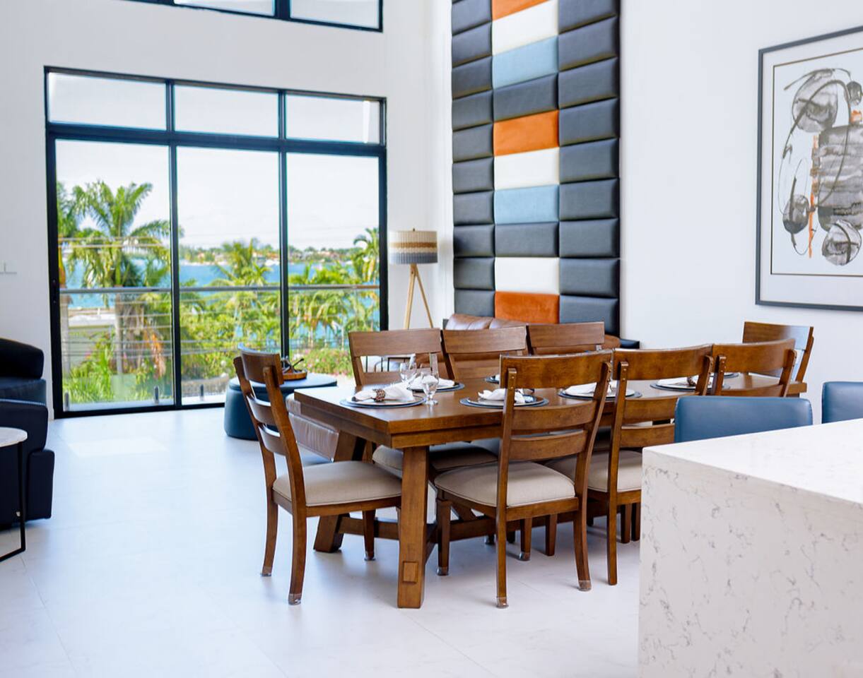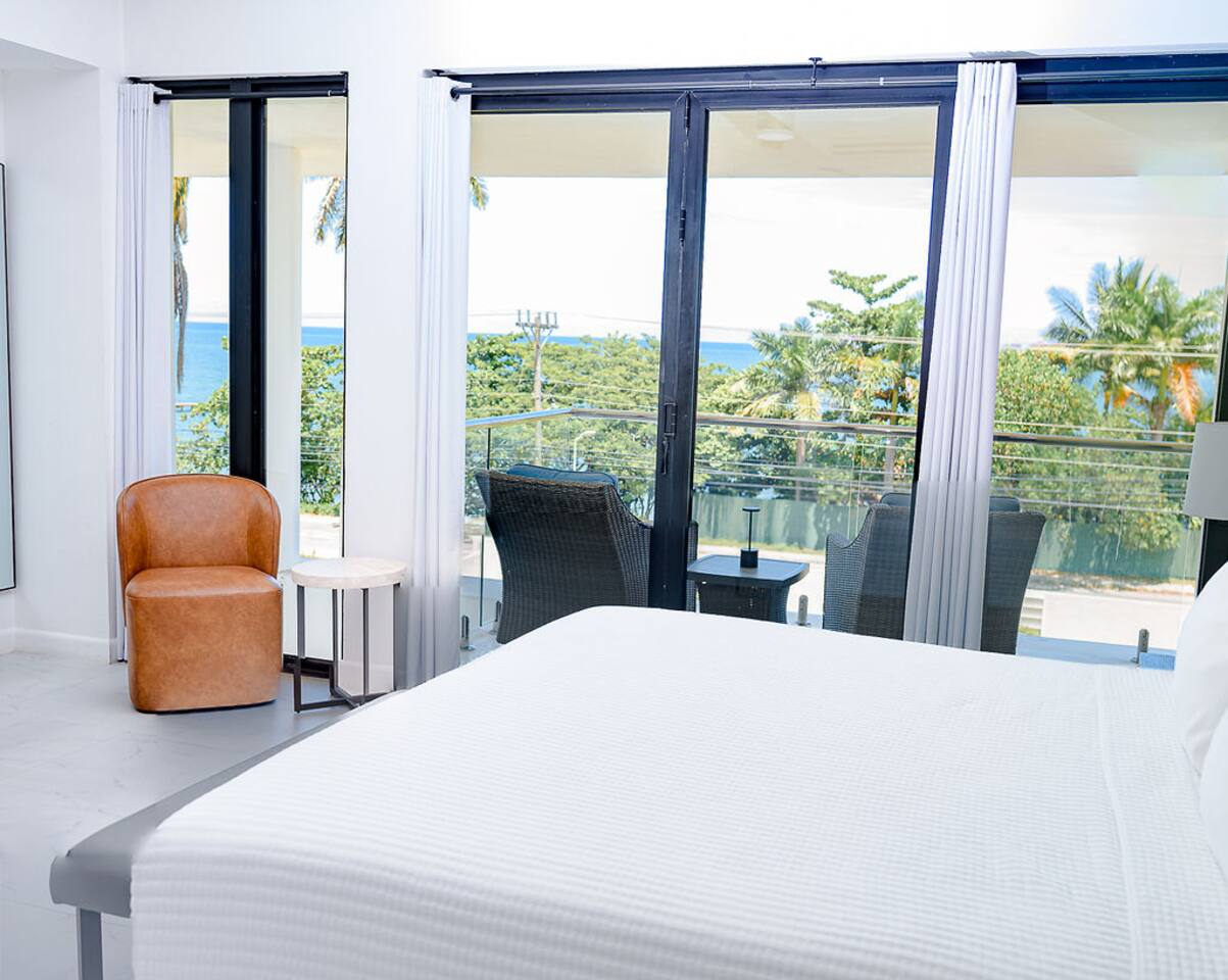 Our philosophy We believe our guests should have a memorable experience while staying at our properties and it starts with great customer service followed by an exceptional accommodations and luxury amenities. Welcome to our piece of Paradise! Where guest will enjoy the expansive views, relax, unwind, have fun and enjoy their stay from this well-appointed villa and the luxury amenities it has to offer. Paradise is located on a gently sloping waterfront site on the resilient corridor overlooking the natural harbor of Montego Bay and the Freeport Hotels, in a gated community with 24-hour security and is just 15 minutes away from Donald Sangster International airport. This modern 3,000 square feet luxurious villa is designed by Atelier Vidal Architects, enhanced by the highest quality in fittings and luxury furnishings. The unit is designed to have a visual connection with the outdoors. The raise building is on pilotis to allow car parking. This penthouse villa is a loft style with double height ceilings and private upper deck infinity plunge pool off the Master Suite. No small detail has been overlooked to ensure you have the most comfortable stay. This includes chef (at an additional cost), housekeeping, one free airport transfer for reservations of 5 nights or more, free parking and full-time concierge services. HIGHLIGHTS OF PARADISE The property offers 3 Bedrooms, 3. 5 bathrooms, all with en-suite luxury bathrooms, equipped with bathroom products, air conditioning and ceiling fans, living room, dining room, kitchen and Mezzanine Lounge area with view of the ocean. In unit Infinity Plunge Pool overlooking the city and Freeport area of Montego Bay. • Secure Gated Community • Smart Lock • Gym • Community lap pool and a lounge pool One Complimentary Roundtrip airport transfer from Donald Sangster International Airport for reservations of 5 nights or more. Spacious open floor plan Kitchen, Dining and Living room with large windows and door and an amazing view of the ocean. Living room sliding patio doors opens fully out to balcony to create an indoor/outdoor space. Coffee and Mini Bar Station, equipped with a -Keurig K-Duo with complimentary STARTER PACK, of K-pods, coffee, teas, honey, sugar, condensed milk. (Guest are encourage to bring their favorite K-pods) Board Games Shuffle Board Wi-Fi throughout Living room and bedrooms equipped with Smart TV’s. Configuration of Villa Ground Floor: Bedroom 1: Queen Bed with luxurious linens, Smart TV, Alexa alarm clock, large windows, En-suite Bathroom with walk-in shower and LED lighted mirrors, walk-in closet and in-room Safe Bedroom 2: King Bed with luxurious linens, Smart TV, Alexa alarm clock, En-Suite Bathroom with walk-in shower and LED lighted mirrors, walk-in closet and in-room Safe. Accordion style patio doors that open fully to the patio for a seamless transition that creates an indoor/outdoor space with views of the ocean. Laundry Room: LG Washer and Dryer with complimentary laundry detergent Powder Room Upstairs: Master Suite: King Bed with luxurious linens, Smart TV, Alexa alarm clock, large windows and accordion style patio doors that opens fully out to the patio and infinity plunge pool area with views of the ocean, overlooking the city and Freeport area of Montego Bay. En-suite bathroom with double vanity sinks with LED lighted mirrors, walk-in shower with double shower heads and soaking tub, bidet, walk-in closet and in-room safe. Mezzanine Lounge: The Mezzanine Lounge with a picture-perfect view of the Caribbean Ocean, boasts a game room with shuffle board and bowling pins for guest entertainment. With direct access to the Infinity Plunge pool. Leaving Paradise by no doubt will be hard to do but if you wish to take a day trip to explore the beautiful island of Jamaica to go rafting, horseback riding, visiting the amazing waterfalls, sunset cruises just to name a few, reservations can be arranged with the Concierge. We look forward to hosting you at Paradise!