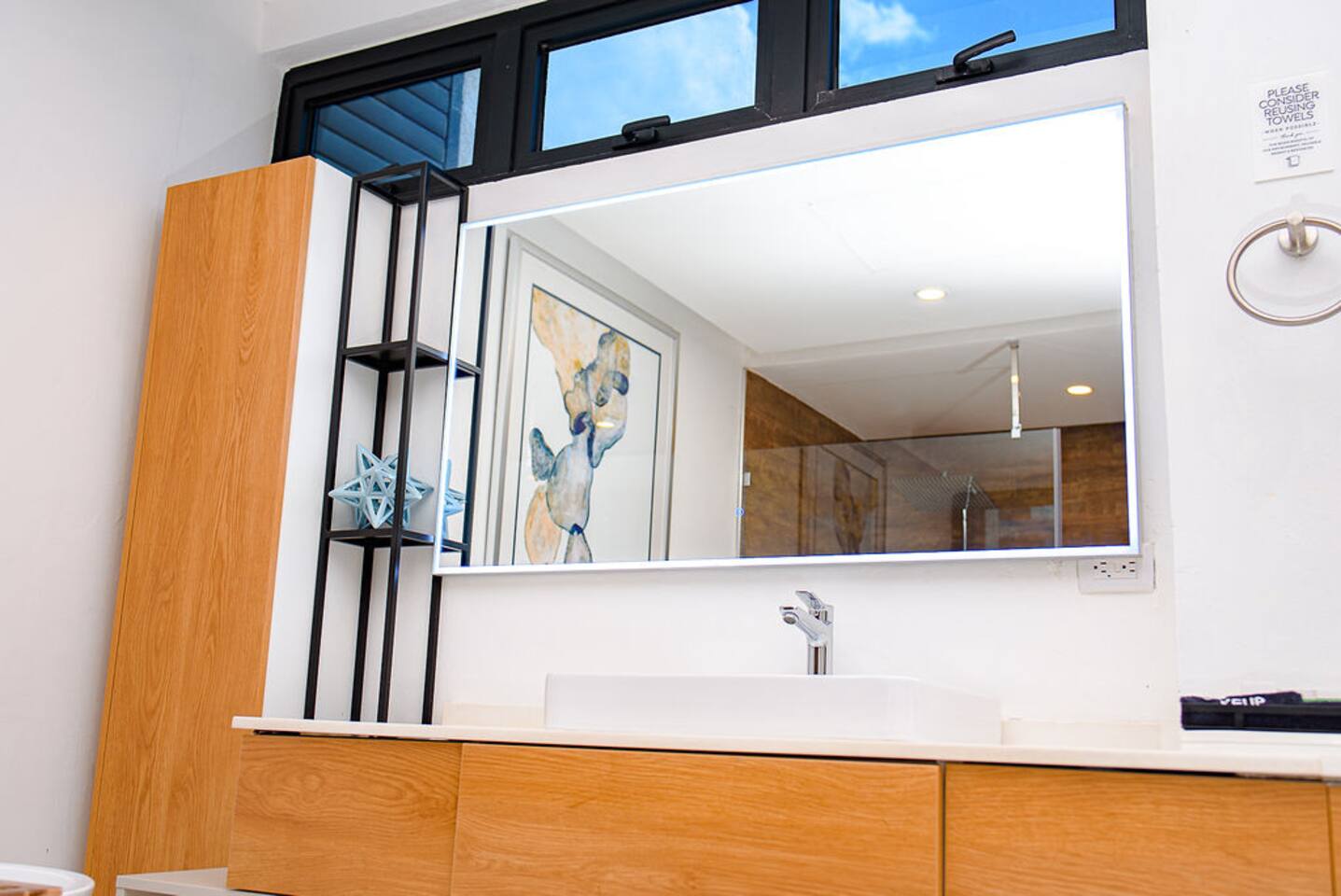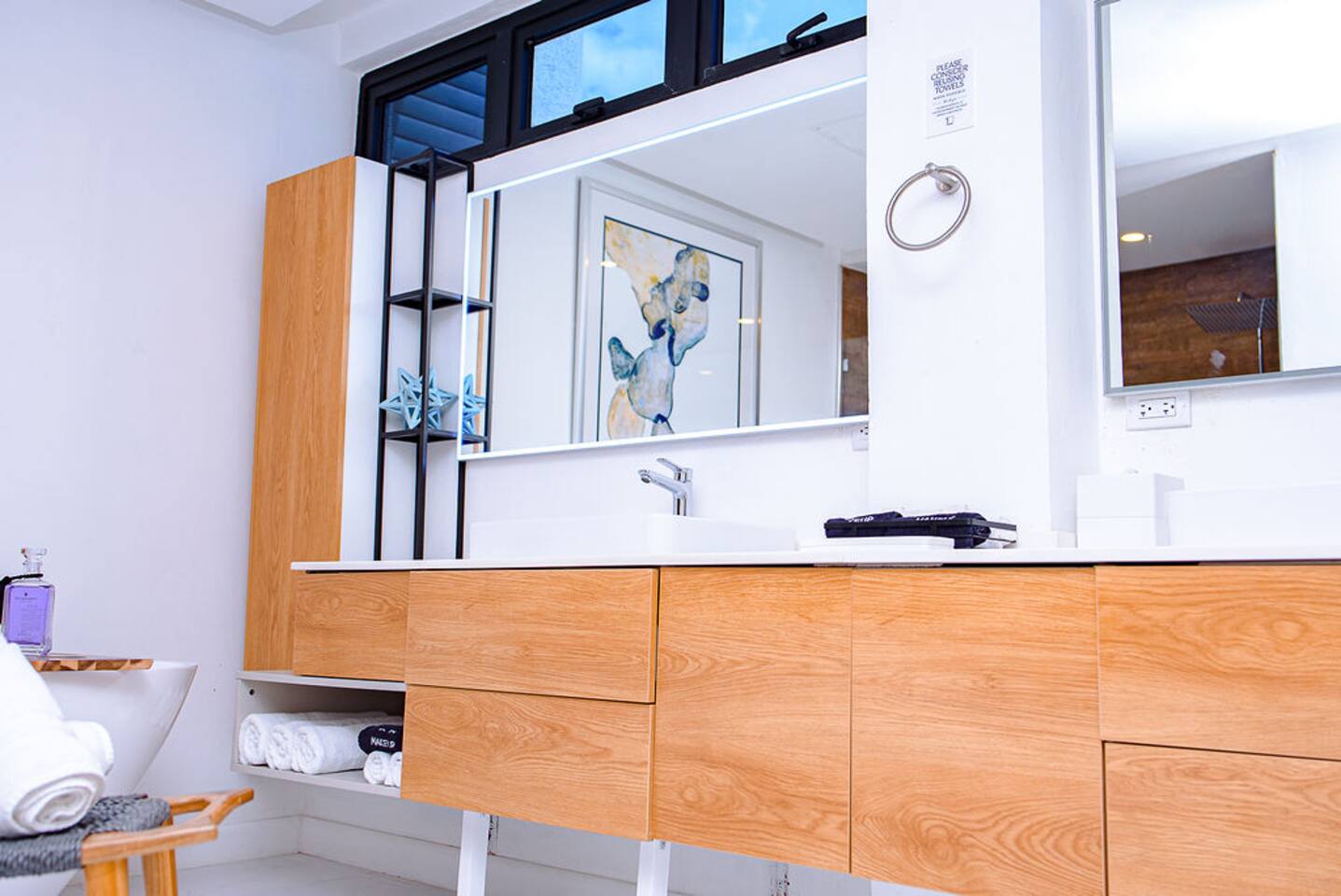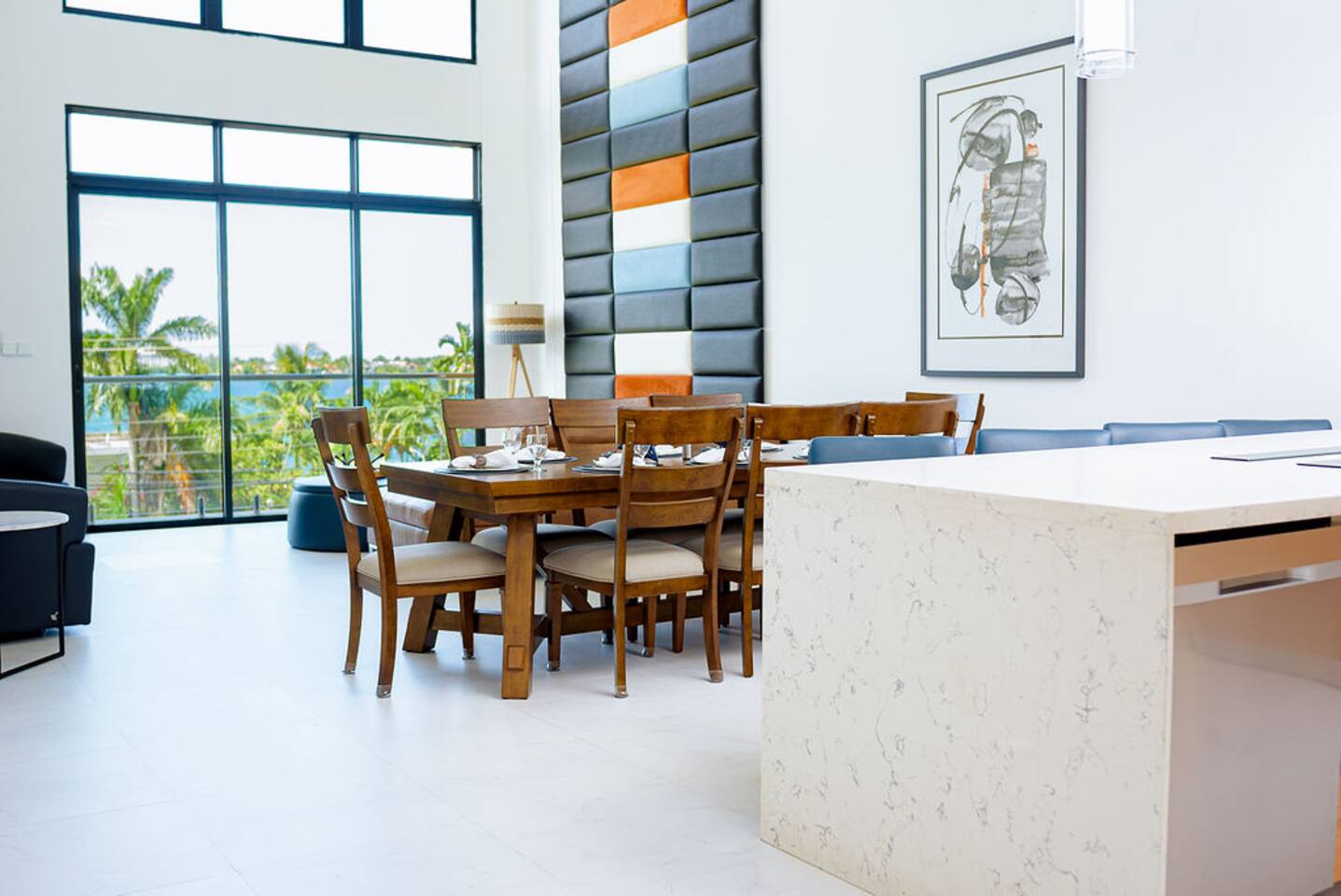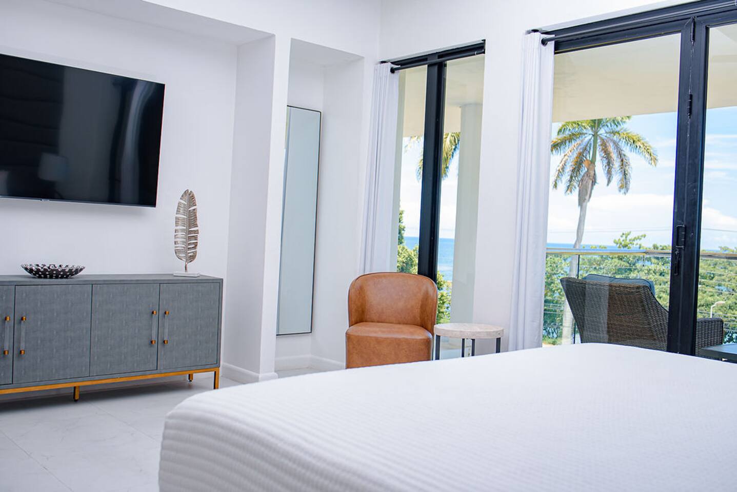 Our philosophy We believe our guests should have a memorable experience while staying at our properties and it starts with great customer service followed by an exceptional accommodations and luxury amenities. Welcome to our piece of Paradise! Where guest will enjoy the expansive views, relax, unwind, have fun and enjoy their stay from this well-appointed villa and the luxury amenities it has to offer. Paradise is located on a gently sloping waterfront site on the resilient corridor overlooking the natural harbor of Montego Bay and the Freeport Hotels, in a gated community with 24-hour security and is just 15 minutes away from Donald Sangster International airport. This modern 3,000 square feet luxurious villa is designed by Atelier Vidal Architects, enhanced by the highest quality in fittings and luxury furnishings. The unit is designed to have a visual connection with the outdoors. The raise building is on pilotis to allow car parking. This penthouse villa is a loft style with double height ceilings and private upper deck infinity plunge pool off the Master Suite. No small detail has been overlooked to ensure you have the most comfortable stay. This includes chef (at an additional cost), housekeeping, one free airport transfer for reservations of 5 nights or more, free parking and full-time concierge services. HIGHLIGHTS OF PARADISE The property offers 3 Bedrooms, 3. 5 bathrooms, all with en-suite luxury bathrooms, equipped with bathroom products, air conditioning and ceiling fans, living room, dining room, kitchen and Mezzanine Lounge area with view of the ocean. In unit Infinity Plunge Pool overlooking the city and Freeport area of Montego Bay. • Secure Gated Community • Smart Lock • Gym • Community lap pool and a lounge pool One Complimentary Roundtrip airport transfer from Donald Sangster International Airport for reservations of 5 nights or more. Spacious open floor plan Kitchen, Dining and Living room with large windows and door and an amazing view of the ocean. Living room sliding patio doors opens fully out to balcony to create an indoor/outdoor space. Coffee and Mini Bar Station, equipped with a -Keurig K-Duo with complimentary STARTER PACK, of K-pods, coffee, teas, honey, sugar, condensed milk. (Guest are encourage to bring their favorite K-pods) Board Games Shuffle Board Wi-Fi throughout Living room and bedrooms equipped with Smart TV’s. Configuration of Villa Ground Floor: Bedroom 1: Queen Bed with luxurious linens, Smart TV, Alexa alarm clock, large windows, En-suite Bathroom with walk-in shower and LED lighted mirrors, walk-in closet and in-room Safe Bedroom 2: King Bed with luxurious linens, Smart TV, Alexa alarm clock, En-Suite Bathroom with walk-in shower and LED lighted mirrors, walk-in closet and in-room Safe. Accordion style patio doors that open fully to the patio for a seamless transition that creates an indoor/outdoor space with views of the ocean. Laundry Room: LG Washer and Dryer with complimentary laundry detergent Powder Room Upstairs: Master Suite: King Bed with luxurious linens, Smart TV, Alexa alarm clock, large windows and accordion style patio doors that opens fully out to the patio and infinity plunge pool area with views of the ocean, overlooking the city and Freeport area of Montego Bay. En-suite bathroom with double vanity sinks with LED lighted mirrors, walk-in shower with double shower heads and soaking tub, bidet, walk-in closet and in-room safe. Mezzanine Lounge: The Mezzanine Lounge with a picture-perfect view of the Caribbean Ocean, boasts a game room with shuffle board and bowling pins for guest entertainment. With direct access to the Infinity Plunge pool. Leaving Paradise by no doubt will be hard to do but if you wish to take a day trip to explore the beautiful island of Jamaica to go rafting, horseback riding, visiting the amazing waterfalls, sunset cruises just to name a few, reservations can be arranged with the Concierge. We look forward to hosting you at Paradise!