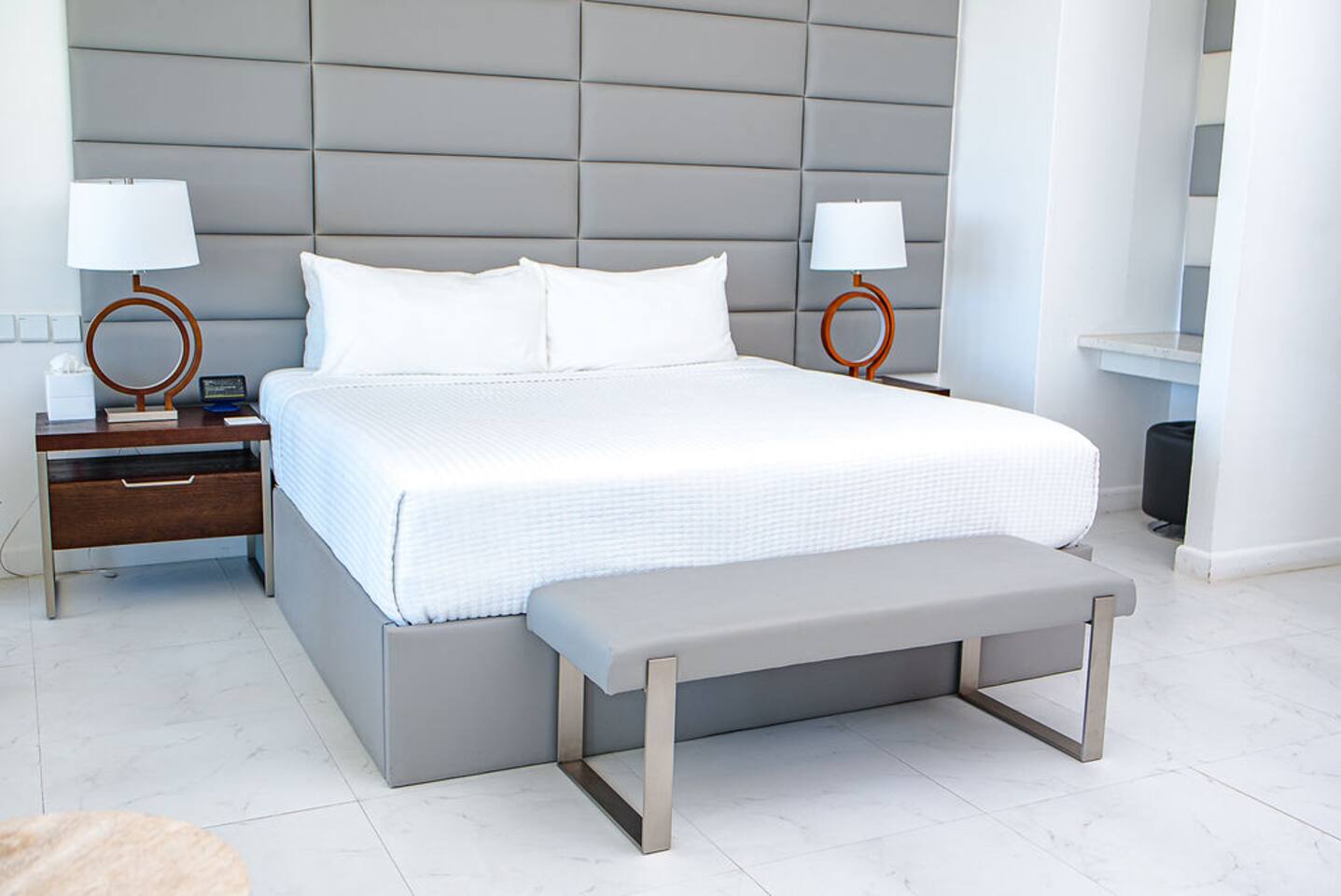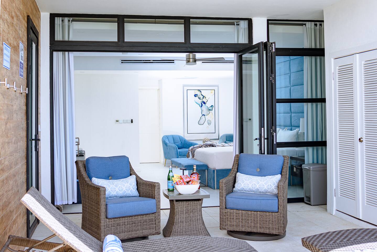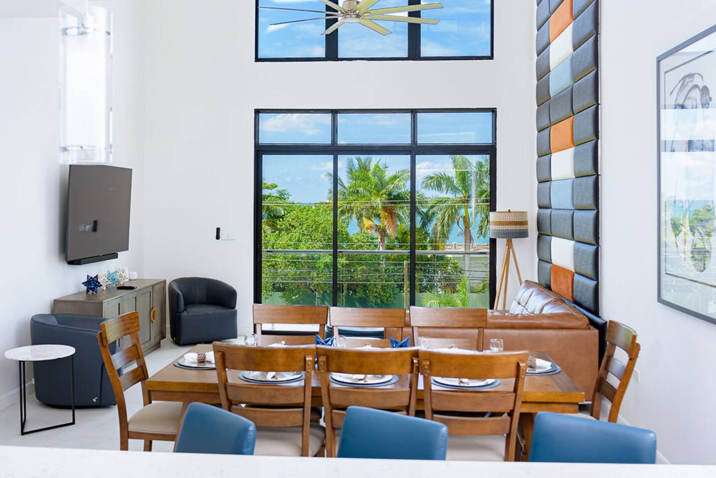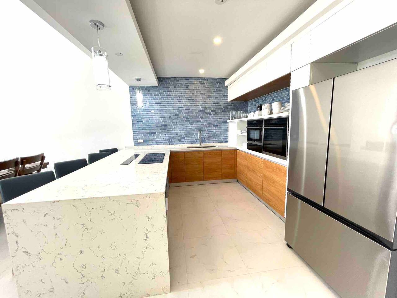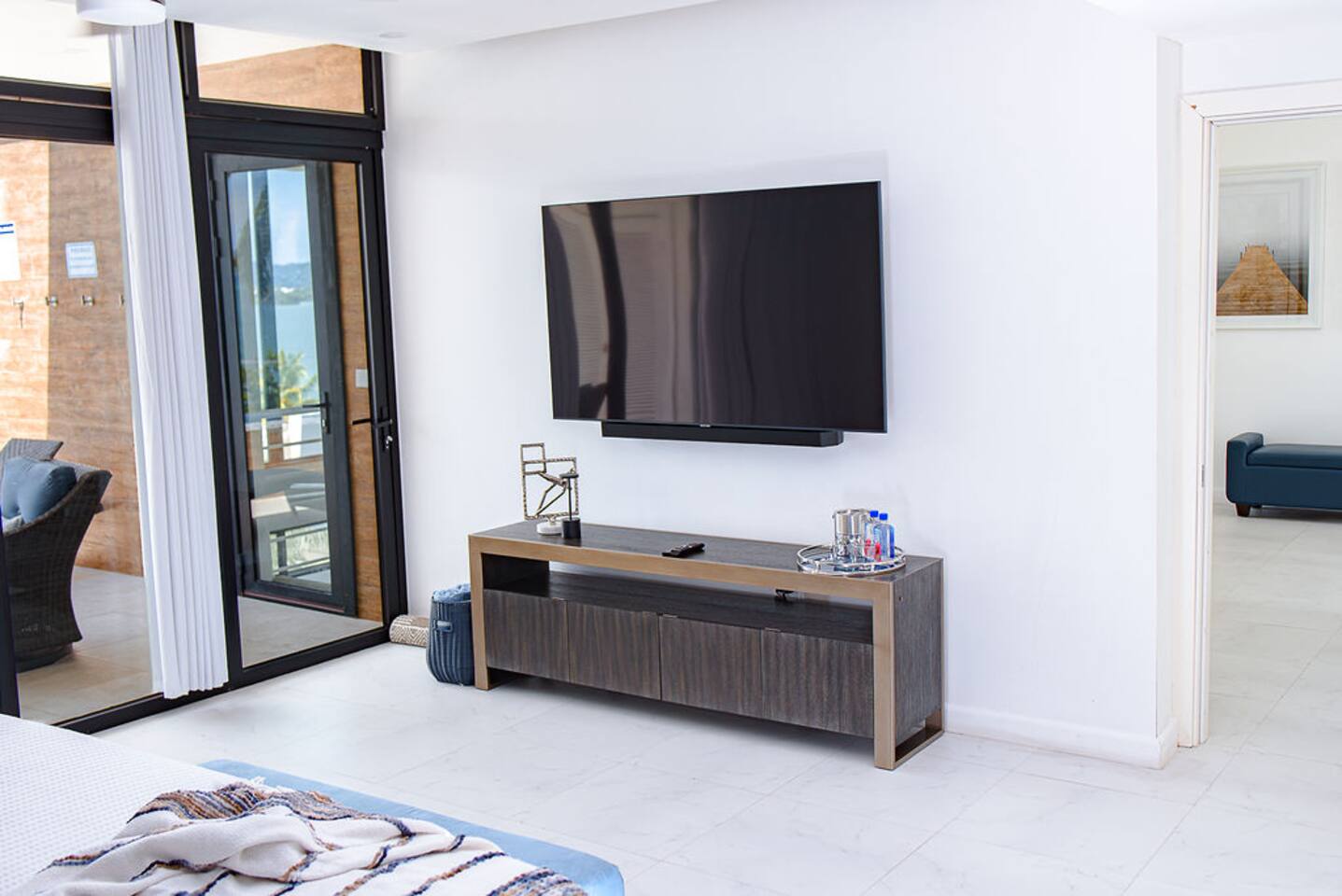 Our philosophy We believe our guests should have a memorable experience while staying at our properties and it starts with great customer service followed by an exceptional accommodations and luxury amenities. Welcome to our piece of Paradise! Where guest will enjoy the expansive views, relax, unwind, have fun and enjoy their stay from this well-appointed villa and the luxury amenities it has to offer. Paradise is located on a gently sloping waterfront site on the resilient corridor overlooking the natural harbor of Montego Bay and the Freeport Hotels, in a gated community with 24-hour security and is just 15 minutes away from Donald Sangster International airport. This modern 3,000 square feet luxurious villa is designed by Atelier Vidal Architects, enhanced by the highest quality in fittings and luxury furnishings. The unit is designed to have a visual connection with the outdoors. The raise building is on pilotis to allow car parking. This penthouse villa is a loft style with double height ceilings and private upper deck infinity plunge pool off the Master Suite. No small detail has been overlooked to ensure you have the most comfortable stay. This includes chef (at an additional cost), housekeeping, one free airport transfer for reservations of 5 nights or more, free parking and full-time concierge services. HIGHLIGHTS OF PARADISE The property offers 3 Bedrooms, 3. 5 bathrooms, all with en-suite luxury bathrooms, equipped with bathroom products, air conditioning and ceiling fans, living room, dining room, kitchen and Mezzanine Lounge area with view of the ocean. In unit Infinity Plunge Pool overlooking the city and Freeport area of Montego Bay. • Secure Gated Community • Smart Lock • Gym • Community lap pool and a lounge pool One Complimentary Roundtrip airport transfer from Donald Sangster International Airport for reservations of 5 nights or more. Spacious open floor plan Kitchen, Dining and Living room with large windows and door and an amazing view of the ocean. Living room sliding patio doors opens fully out to balcony to create an indoor/outdoor space. Coffee and Mini Bar Station, equipped with a -Keurig K-Duo with complimentary STARTER PACK, of K-pods, coffee, teas, honey, sugar, condensed milk. (Guest are encourage to bring their favorite K-pods) Board Games Shuffle Board Wi-Fi throughout Living room and bedrooms equipped with Smart TV’s. Configuration of Villa Ground Floor: Bedroom 1: Queen Bed with luxurious linens, Smart TV, Alexa alarm clock, large windows, En-suite Bathroom with walk-in shower and LED lighted mirrors, walk-in closet and in-room Safe Bedroom 2: King Bed with luxurious linens, Smart TV, Alexa alarm clock, En-Suite Bathroom with walk-in shower and LED lighted mirrors, walk-in closet and in-room Safe. Accordion style patio doors that open fully to the patio for a seamless transition that creates an indoor/outdoor space with views of the ocean. Laundry Room: LG Washer and Dryer with complimentary laundry detergent Powder Room Upstairs: Master Suite: King Bed with luxurious linens, Smart TV, Alexa alarm clock, large windows and accordion style patio doors that opens fully out to the patio and infinity plunge pool area with views of the ocean, overlooking the city and Freeport area of Montego Bay. En-suite bathroom with double vanity sinks with LED lighted mirrors, walk-in shower with double shower heads and soaking tub, bidet, walk-in closet and in-room safe. Mezzanine Lounge: The Mezzanine Lounge with a picture-perfect view of the Caribbean Ocean, boasts a game room with shuffle board and bowling pins for guest entertainment. With direct access to the Infinity Plunge pool. Leaving Paradise by no doubt will be hard to do but if you wish to take a day trip to explore the beautiful island of Jamaica to go rafting, horseback riding, visiting the amazing waterfalls, sunset cruises just to name a few, reservations can be arranged with the Concierge. We look forward to hosting you at Paradise!